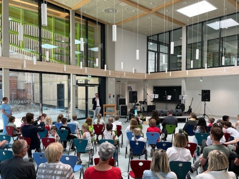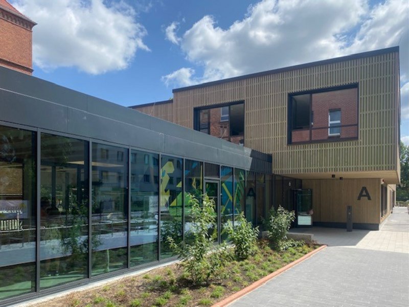 Am 25. September wurde die neue Grundschule Lindenhof feierlich eröffnet. Mit rund 27 Millionen Euro Investitionssumme ist sie das größte kommunale Bauprojekt der 2020er Jahre. Die moderne, digital ausgestattete Schule an der Mühlenstraße bietet Platz für bis zu 720 Schüler der Klassen 1 bis 6 und beschäftigt etwa 60 Mitarbeitende. Es gibt je zwölf Klassenräume pro Obergeschoss, eine Mensa für 600 Mahlzeiten täglich sowie eine Aula/Mensa als Versammlungsstätte für bis zu 400 Personen. Die Beheizung des Schulcampus erfolgt umweltfreundlich durch Abwärme aus dem Klärwerk Stahnsdorf. GALANDI SCHIRMER | ARCHITEKTEN + INGENIEURE GMBH erbrachte hier als Generalplaner die Leistungsphasen 1 - 9 HOAI.