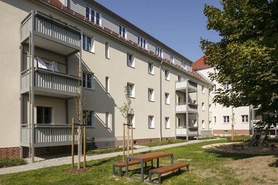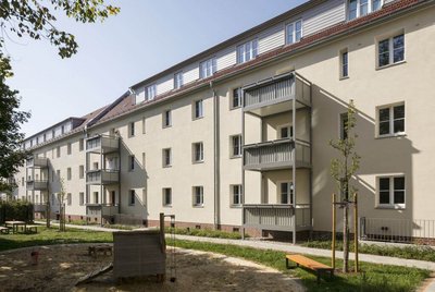 Neben der erfolgreichen baukonstruktiven und energetischen Modernisierung und Instandsetzung von GSAI wurden die Grundrisse der Bedarfssituation sowie den Maßstäben zeitgemäßen Wohnens angepasst. Das Objekt fasst nunmehr 58 moderne Wohneinheiten.