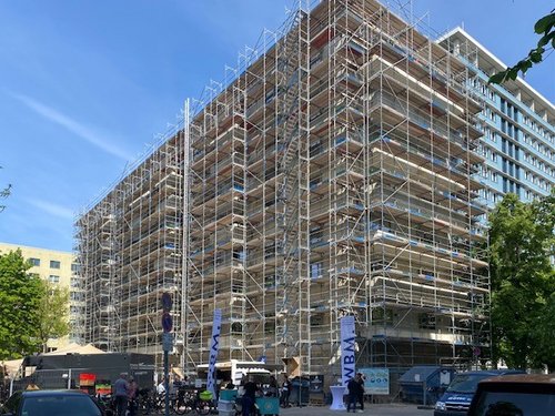 Zusammen mit der WBM und Anwohnern feierte GALANDI SCHIRMER | ARCHITEKTEN + INGENIEURE GMBH am 30.04.2025 den Baufortschritt ihres Neubauprojekts in der Berolinastraße nahe Alexanderplatz. Dort entstehen 72 bezahlbare Mietwohnungen, von denen 61 barrierefrei sind. Das bundesweit einmalige Projekt richtet sich gezielt an lesbische und queere Frauen und wird zusammen mit der Rad und Tat Berlin gGmbH (RuT) umgesetzt. Neben den Wohnungen gibt es Gemeinschaftsflächen, ein Kiez-Café und ein soziokulturelles Zentrum. Besonders ist eine Wohngemeinschaft für ältere oder pflegebedürftige lesbische Frauen mit Fokus auf Inklusion und Barrierefreiheit. Die meisten Wohnungen werden gefördert. Das Projekt gilt als Vorbild für soziale Stadtentwicklung und soll bis Anfang 2026 fertig sein.