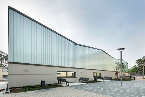 Von 2019 bis 2021 hat GALANDI SCHIRMER | ARCHITEKTEN + INGENIEURE GMBH die Generaltplanung für den Neubau der Dreifeldsporthalle des Schulzentrums im Elstal übernommen. Die Leistungsphasen von 4 bis 9 hat das Berliner Büro planmäßig und erfolgreich begleitet.