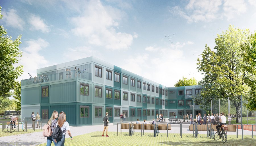 Die Gesamtschule am Schloss in Potsdam wächst und die notwendigen räumlichen Kapazitäten werden mit einer Erweiterung als Interimslösung in modularer Bauweise bis zum Sommer 2027 sichergestellt. Die geplante Containeranlage wird als L-förmiges, drei-geschossiges und alleinstehendes Gebäude im nördlichen Teil des Grundstücks errichtet. GALANDI SCHIRMER | ARCHITEKTEN + INGENIEURE GMBH ist mit der Objektplanung, den Leistungsphasen 1 - 7 und teilweise 8 beauftragt.