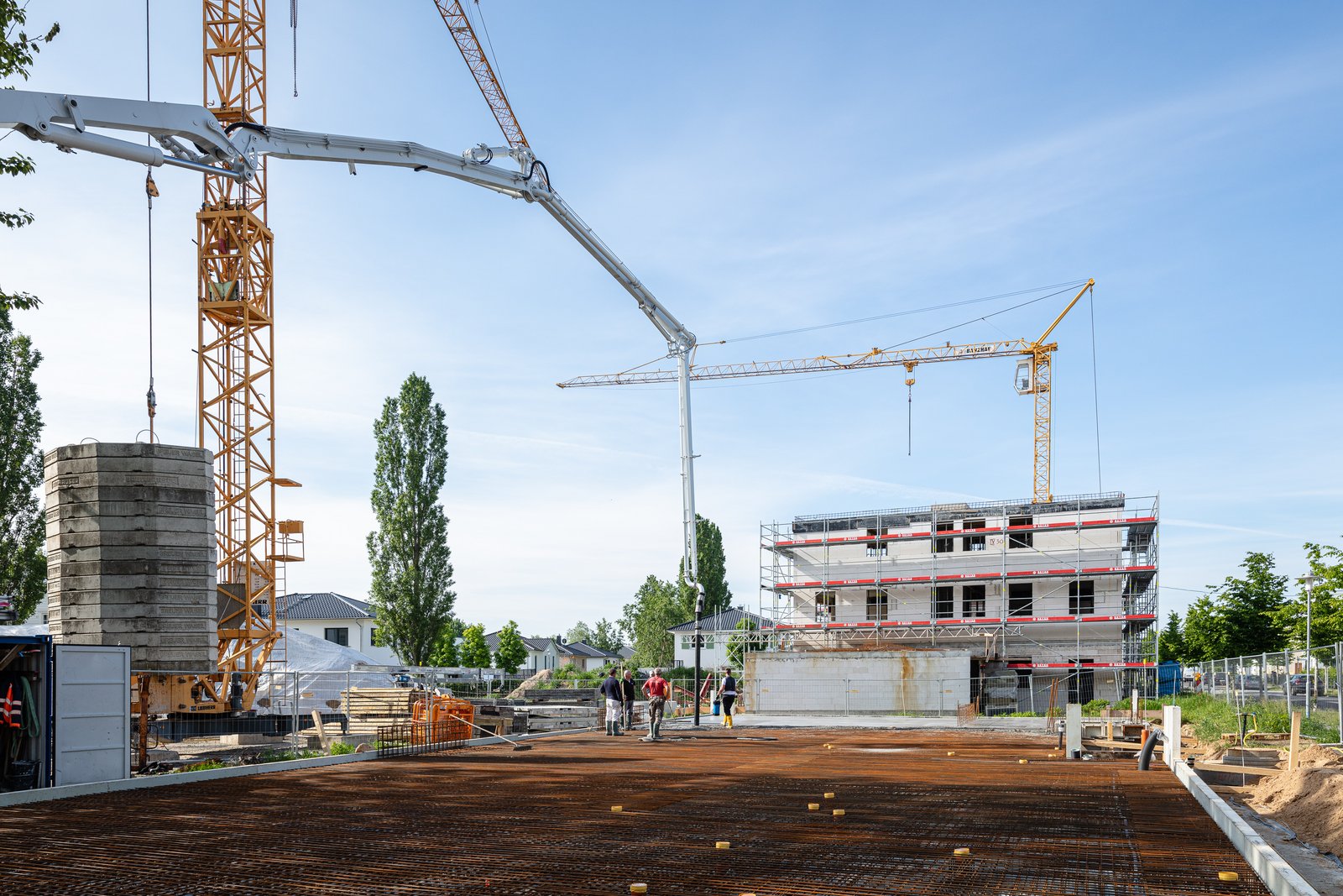 Unter Leitung der GALANDI SCHIRMER | ARCHITEKTEN + INGENIEURE GMBH wird im Rahmen des Bebauungsplans 80.3 „Rote Kaserne West“ auf einer ca. 11.331 m² großen Fläche im städtebaulichen Entwicklungsbereich „Bornstedter Feld“ in Potsdam Geschosswohnungsbau mit insgesamt 157 Wohnungen errichtet. Zusätzlich werden 4 Wohngemeinschaften in den zur Georg-Hermann-Allee orientierten Erdgeschossen hergestellt. Der Rohbau der Häuser 1-4 ist bereits weit fortgeschritten. Die Übergabe der Wohnanlage mit insgesamt acht Gebäuden ist für 2022 vorgesehen.