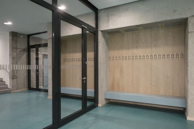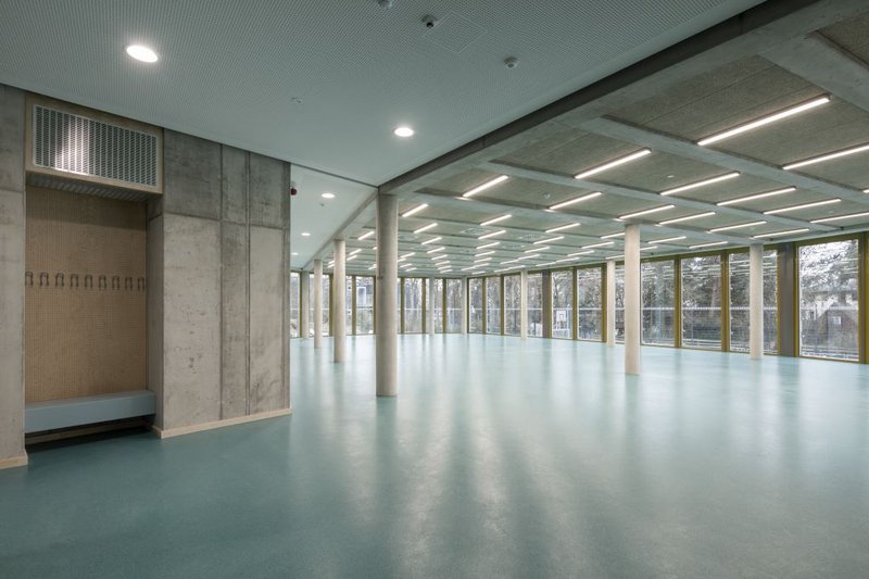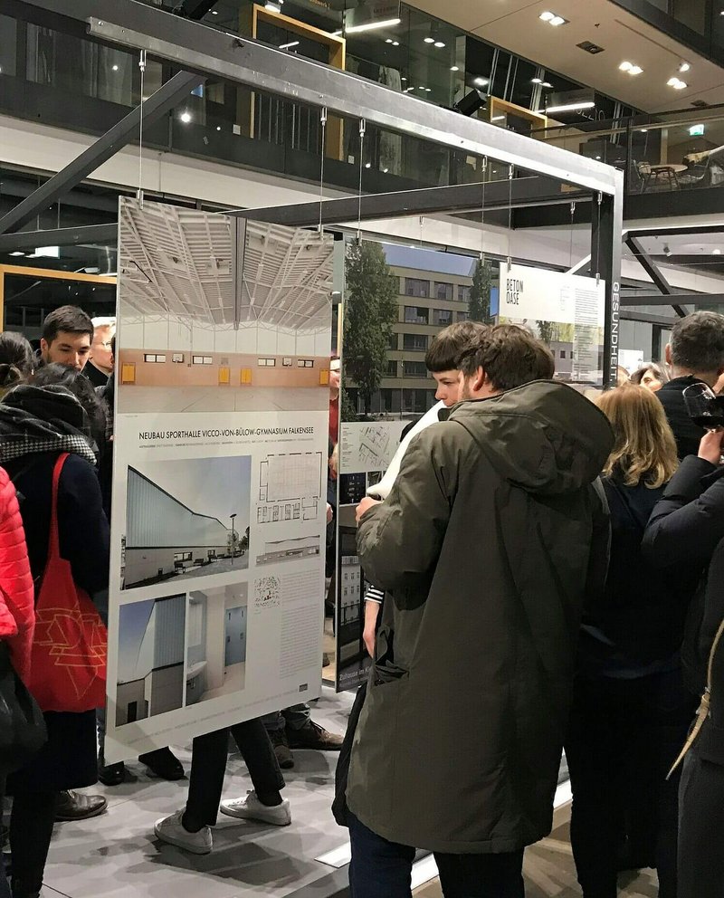 Zur 21. Ausgabe der Ausstellung "da! Architektur in und aus Berlin" 2020 zeigen Mitglieder der Architektenkammer Berlin mit 60 aktuellen Projekten kreative Lösungen der aktuellen Bauaufgaben. GALANDI SCHIRMER | ARCHITEKTEN + INGENIEURE GMBH ist mit dem Neubau der Sporthalle für das Vicco-von-Bülow-Gymnasium in Falkensee in der Ausstellung vertreten. (Foto: Boris Trenkel)