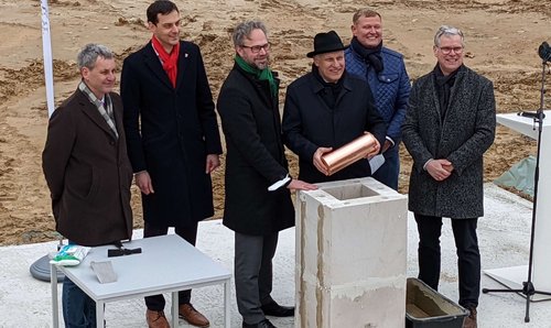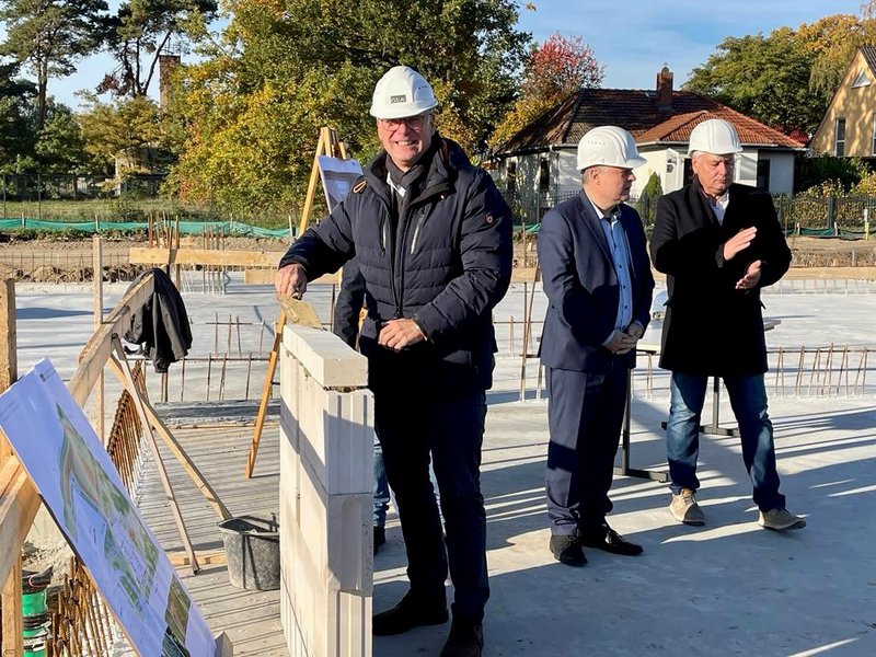 Oberbürgermeister Mike Schubert legte am 11.11.2019 den Grundstein für den Neubau von acht Gebäuden, 157 Wohnungen und 4 Wohngemeinschaften, in der Georg-Hermann-Allee am Bornstedter Feld in Potsdam. Die 1,5 bis 4 Zimmer-Wohnungen sind ein weiterer Schritt in der Realisierung von bezahlbarem Wohnraum in Potsdam. So können auch einkommenschwächere Familien direkt am Potsdamer Volkspark wohnen. Die Fertigstellung des Wohnquartiers ist für das Jahr 2022 zu erwarten.