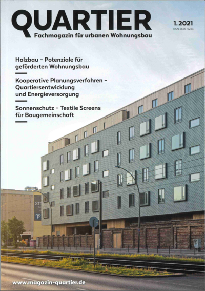 Im QUARTIER, Fachmagazin für urbanen Wohnungsbau, 1. 2021, ist ein Artikel über das Projekt am Tiroler Damm in Potsdam von GALANDI SCHIRMER | ARCHITEKTEN + INGENIEURE GMBH veröffentlicht. Unter dem Leitbild „Wohnen im Wald“ hat GSAI in funktionaler, ökonomischer und energetischer Weise Wohnungen mit einer modernen, zeitlosen Ästhetik realisiert. Dabei stand das kosten- und flächenoptimierte Bauen für bezahlbaren Wohnraum im Vordergrund.