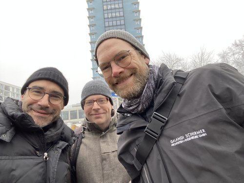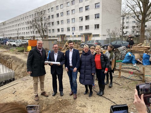 Trotz der eisigen Temperaturen ließen es sich neben zahlreichen Besuchern der Regierende Bürgermeister von Berlin Kai Wegener, Prof. Petra Kahlfeldt, Senatsbaudirektorin und Staatssekretärin für Stadtentwicklung und der Bezirksstadtrat für Stadtentwicklung und Facility Management Ephraim Gothe nicht nehmen zur Grundsteinlegung des integrativen lesbischen Generationen-Wohnprojektes in Berlin-Mitte zu kommen. Die WBM Wohnungsbaugesellschaft Berlin-Mitte realisiert gemeinsam mit der Rat und Tat gGmbH das langersehnte Projekt für selbstbestimmtes und diskriminierungsfreies Wohnen in unmittelbarer Nähe zum Alexanderplatz und GALANDI SCHIRMER | ARCHITEKTEN + INGENIEURE GMBH ist stolz die Planung auszuführen. Bis 2026 sollen hier in der Berolinastraße mehr als 70 Wohnungen samt Kulturzentrum mit Café fertiggestellt werden und so zu einem Treffpunkt für die Nachbarschaft werden.
