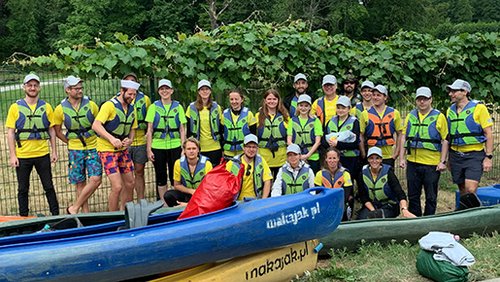 Beste Stimmung beim GSAI-Büroausflug in Polen: In Kajaks führte uns die Pliszka in ihrem naturbelassenen Flusslauf von Sadow 12 km nach Urad bis zur Odermündung. Der unbegradigte Fluss fließt mit seinen vielen Mäandern durch abwechslungsreiche Wälder und gibt den Blick frei für das unberührte Naturparadies. Unzählige Baumhindernisse wollen immer wieder überwunden werden durch Rüberrucken, Darunterdurchschlängeln oder Umtragen. Ein Teamevent, das mit seinen unterschiedlichsten herausfordernden Situationen bei allen einen bleibenden Eindruck hinterlassen hat.