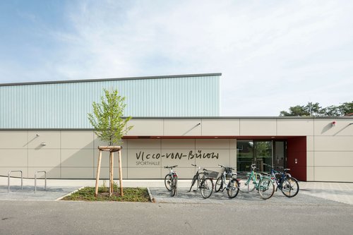 Pünktlich zum zehnjährigen Bestehen des Vicco-von-Bülow-Gymnasiums in Falkensee fand die Einweihung der neuen Sporthalle statt. Bürgermeister Heiko Müller überreichte der Schulleiterin Anka Bullerjahn feierlich den symbolischen Schlüssel am 09. August 2019. Ab sofort kann die Sporthalle für den Schul- und Vereinssport genutzt werden. Die Weite und Großzügigkeit des Hallenraumes sind der weißen leicht gefalteten Dachkonstruktion und dem umlaufenden Lichtband geschuldet. Die Sporthalle wurde von Galandi Schirmer | Architekten und Ingenieure GmbH als Generalplaner geplant und realisiert.