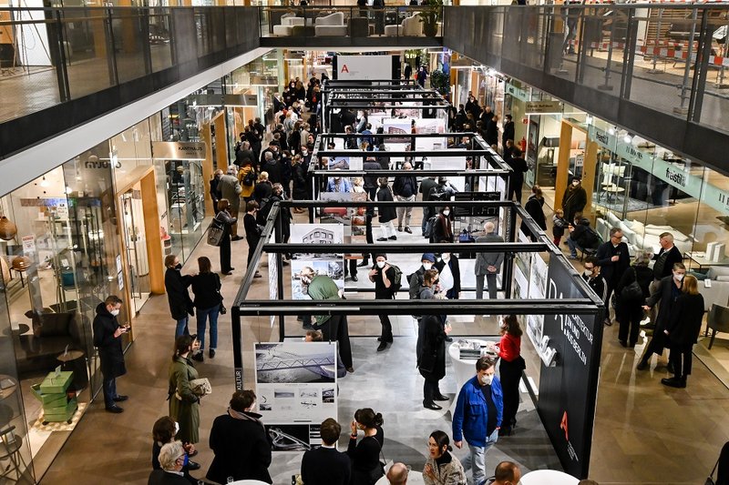 Zur 21. Ausgabe der Ausstellung "da! Architektur in und aus Berlin" 2020 zeigen Mitglieder der Architektenkammer Berlin mit 60 aktuellen Projekten kreative Lösungen der aktuellen Bauaufgaben. GALANDI SCHIRMER | ARCHITEKTEN + INGENIEURE GMBH ist mit dem Neubau der Sporthalle für das Vicco-von-Bülow-Gymnasium in Falkensee in der Ausstellung vertreten. (Foto: Boris Trenkel)